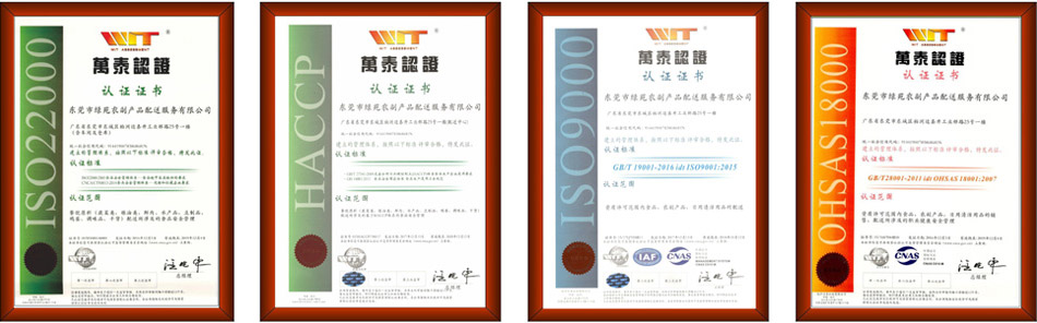 綠苑全面通過IS09001國際質量體系認證。嚴格按照IS09001認證制度作業,重點管控從客戶反饋流程、菜單開立、配送作業流程、采購作業流程以及現場烹調、供膳規劃、到回收清潔等,IS09001均詳細規定,確保每位客戶享有符合國際標準的服務品質與內容。