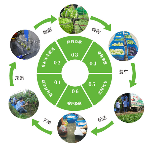 從農(nóng)田到餐桌、實惠、安全、衛(wèi)生、專業(yè)的采購及統(tǒng)一的物流配送